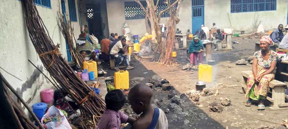 des retournés passant nuits dans les enceintes d’une école à Sake (28km de Goma)